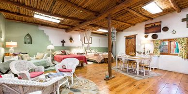 The Casita sleeps a maximum of 5 in 2 queens and a day bed. It has a full bath (shower but no bathtub). An adjoining sitting room and bathroom can be made available upon request.